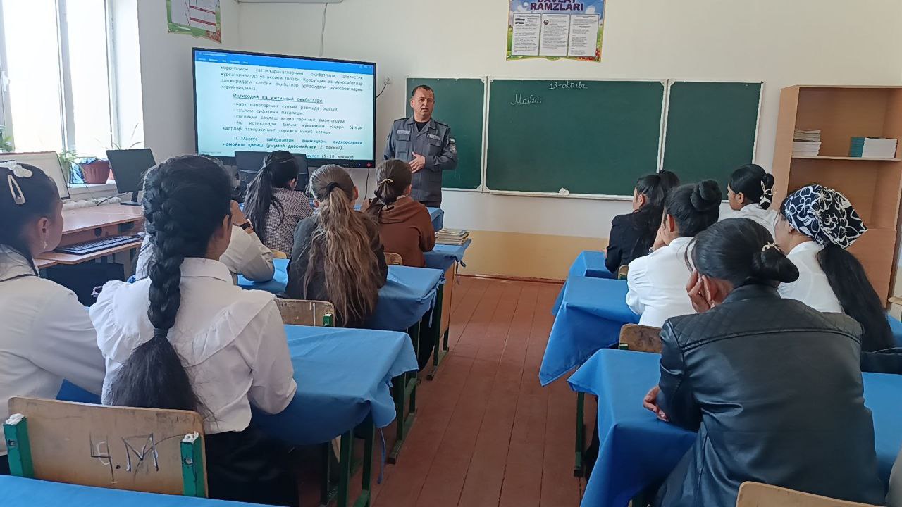 Maktablarda korrupsiyaga qarshi huquqiy targ‘ibot o‘tkazildi